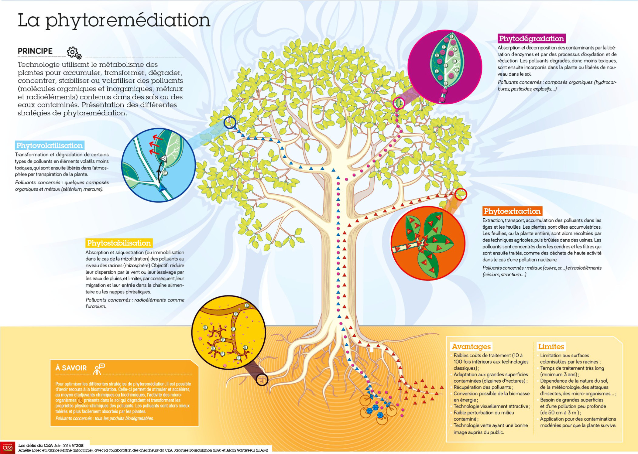 • La dégradation : Certaines plantes ou micro-organismes associés aux racines dégradent des contaminants comme les pesticides.