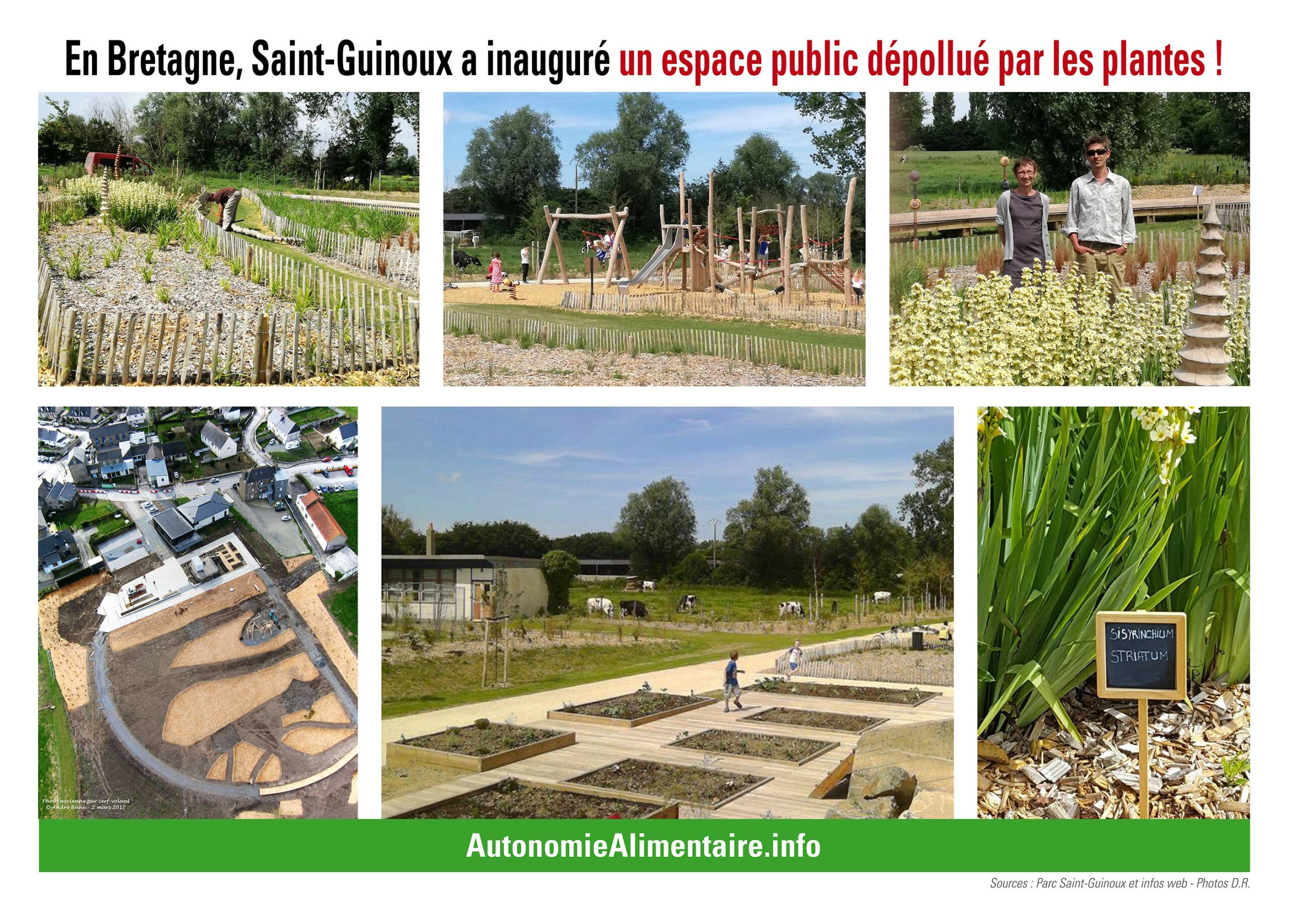 Exemple réussi d’une action de phytoremédiation dans une commune de Bretagne, à Saint-Guinoux, située en Ille-et-Vilaine : dans ce cas, un parc avec jardin public a été développé sur une ancienne casse automobile, dont le sol était pollué par différents métaux lourds. Pour assainir le site, des plantes ont été utilisée dans le but de dépolluer le sol sur le principe de phytoremédiation.