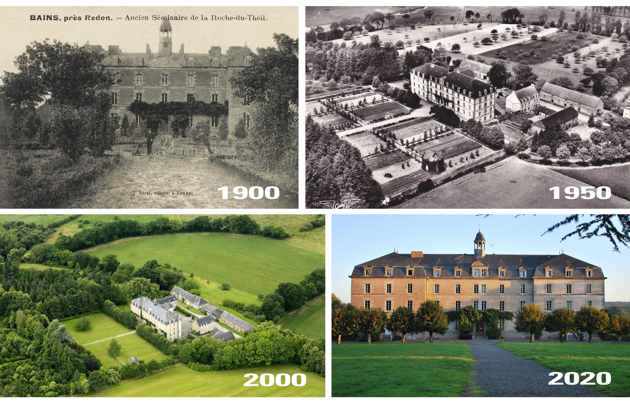 Étude de cas à partir d’une lecture de paysage dans le département d’Ille-et-Vilaine avec l’observation du centre de la Roche-du-Theil sur 120 ans, soit de 1900 à aujourd’hui, illustration d’une organisation autonome, intégrée et résiliente quant à son approvisionnement de nourriture directement autour de l’établissement. À partir du tournant des années 70, le grand potager qui alimentait directement la congrégation a été transformé en gazon d’ornementation. Les verges ont été rasés et la ferme a arrêté de produire la nourriture.