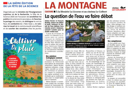 LA MONTAGNE – Culture. La question de l’eau va faire débat. Sabine Becker et François Rouillay, auteurs de Cultiver la pluie, restaurer le chemin de l’eau (éditions Terre vivante) seront …